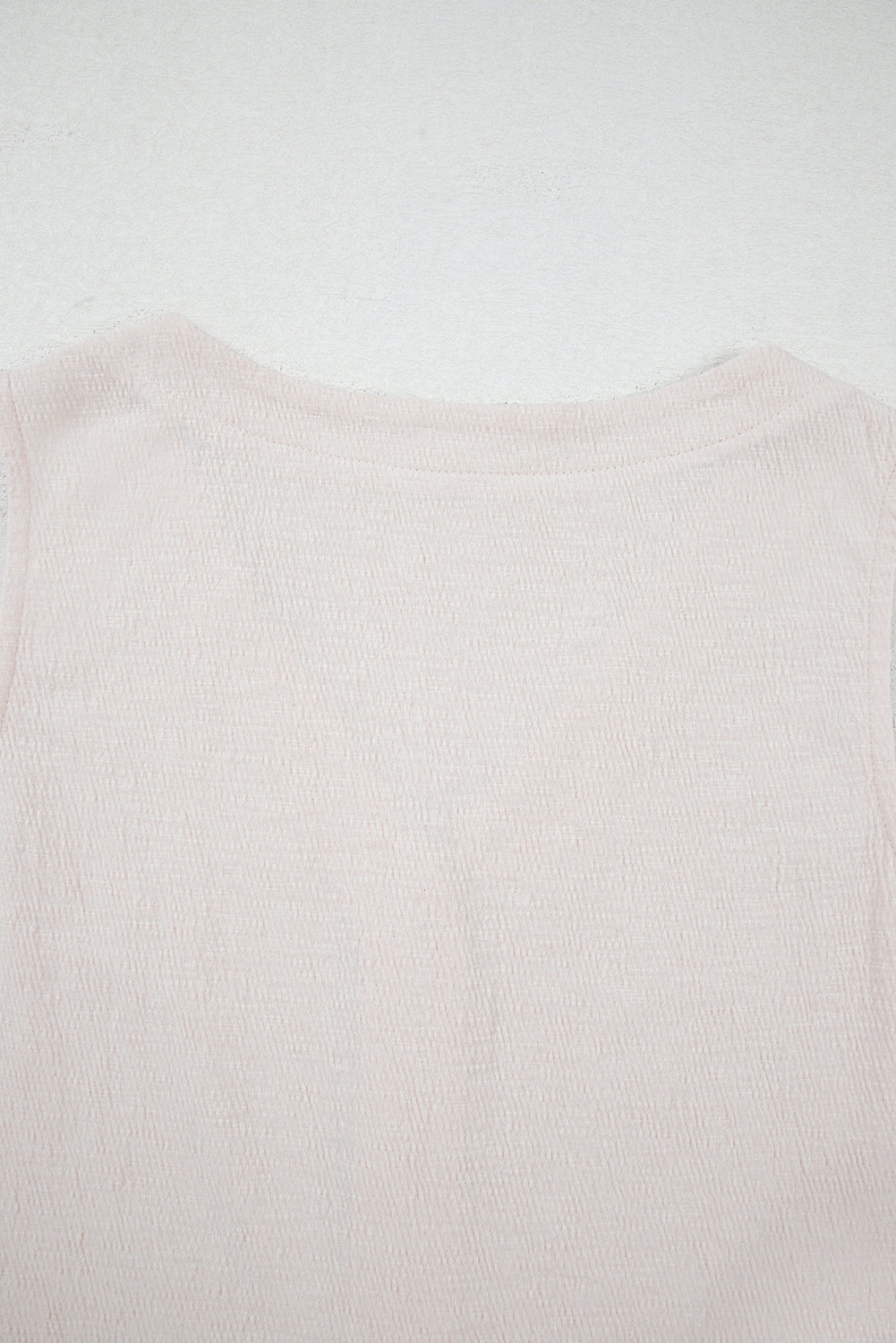 Apricot Buttoned V Neck Tank Top and Wide Leg Pants Casual Outfit