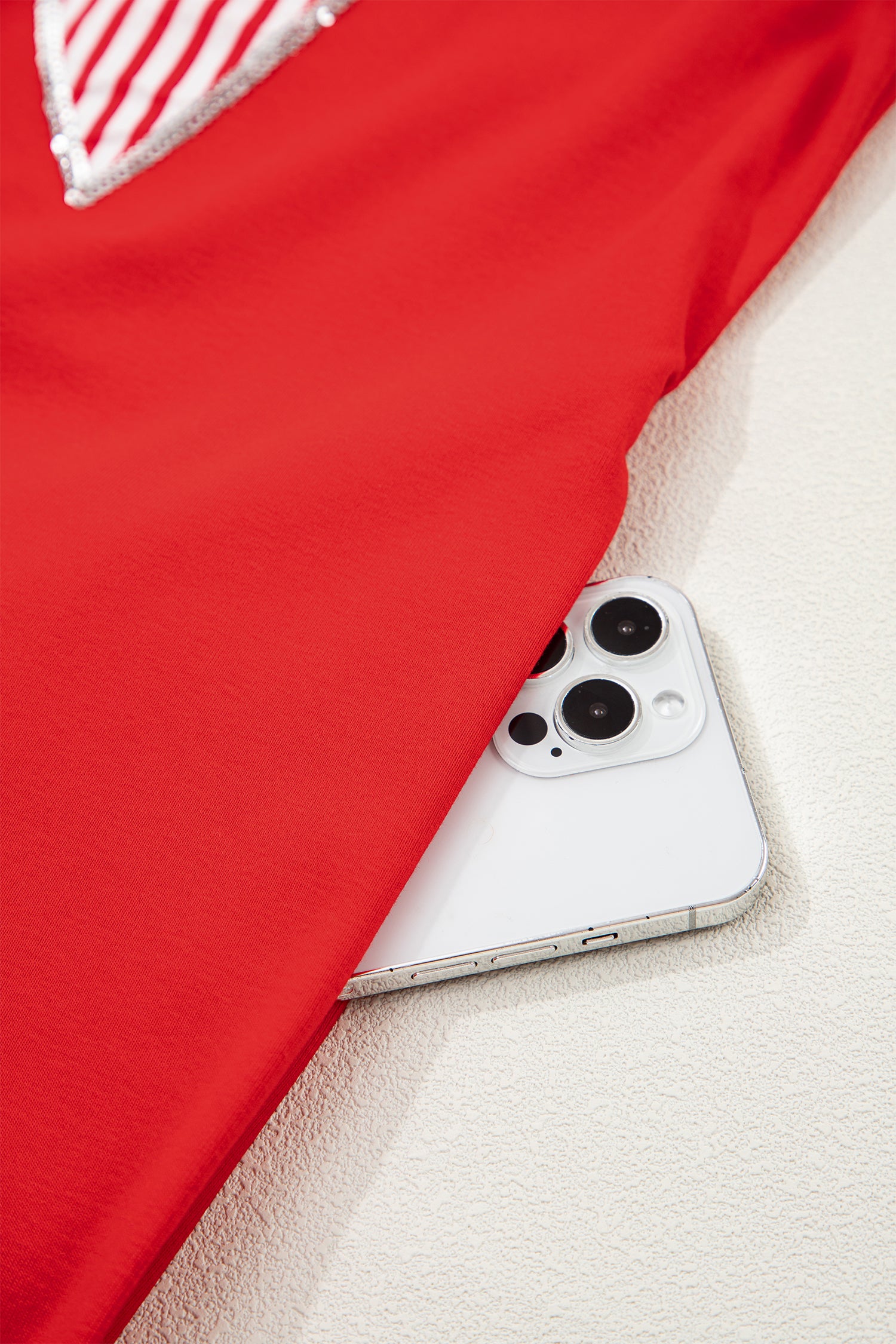 Fiery Red Sequin Trim Stars and Stripes Bow Patched T Shirt Mini Dress