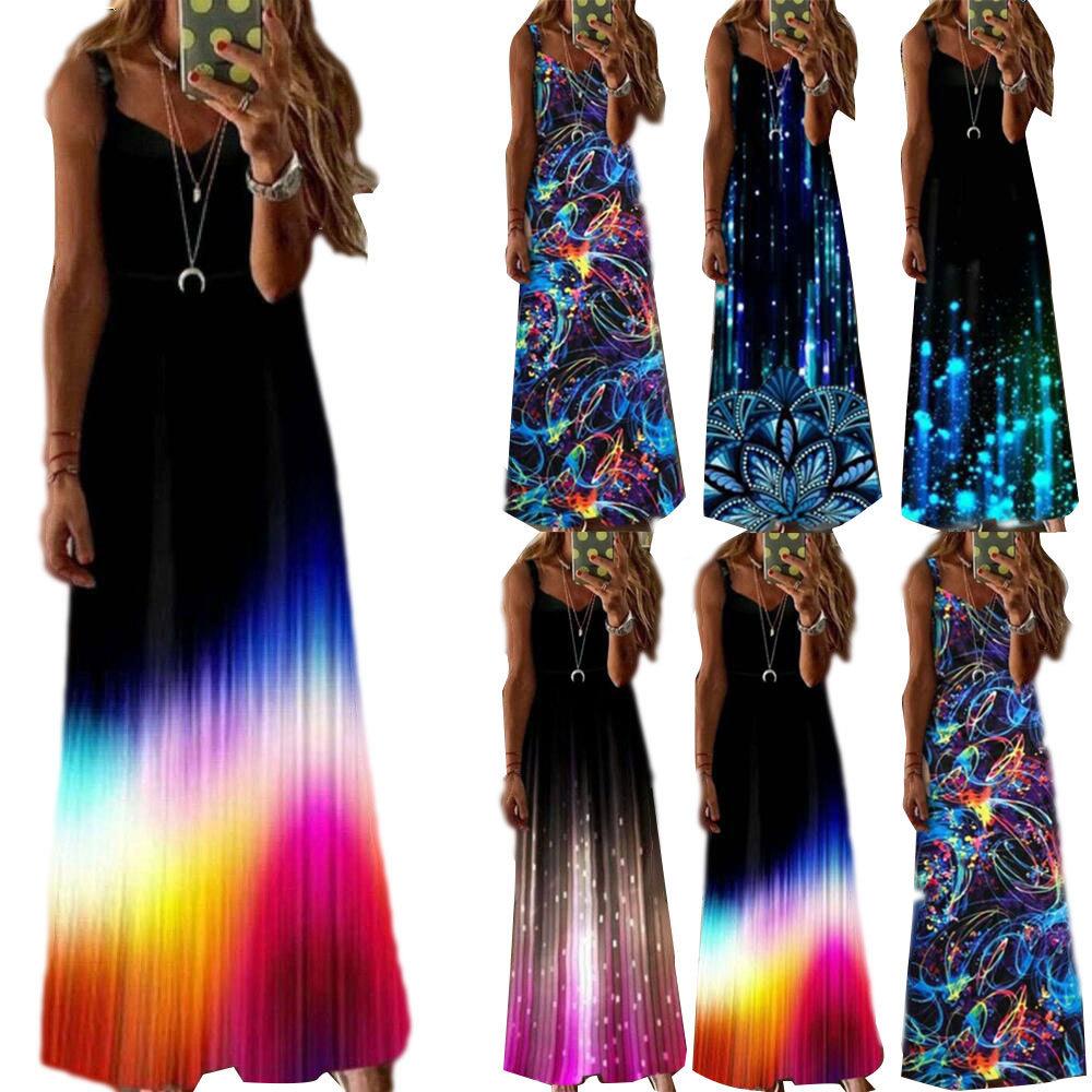 Cross-border Five-color Luminous Print Sling Dress In Stock