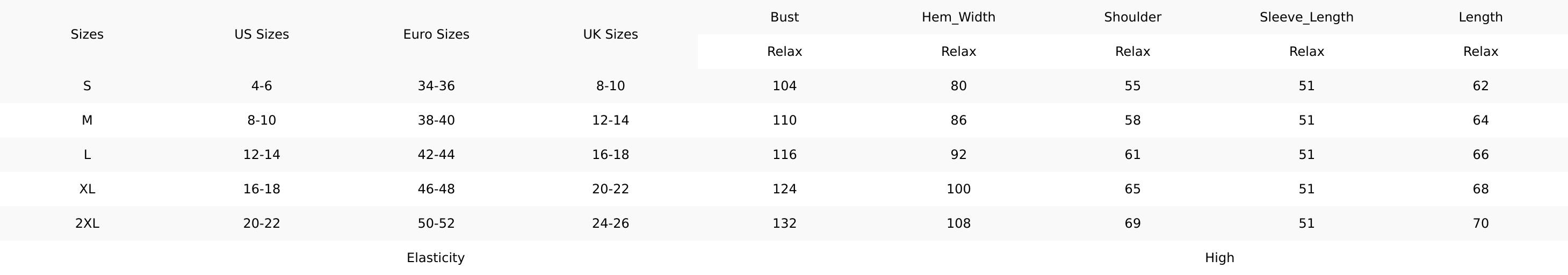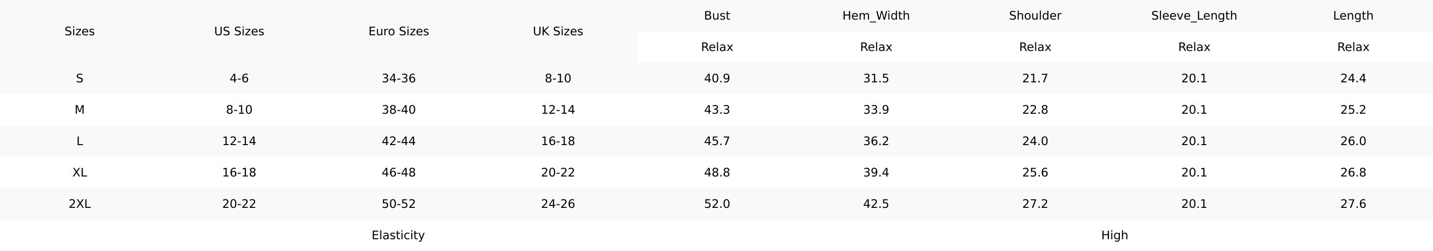 Size Chart (CM)