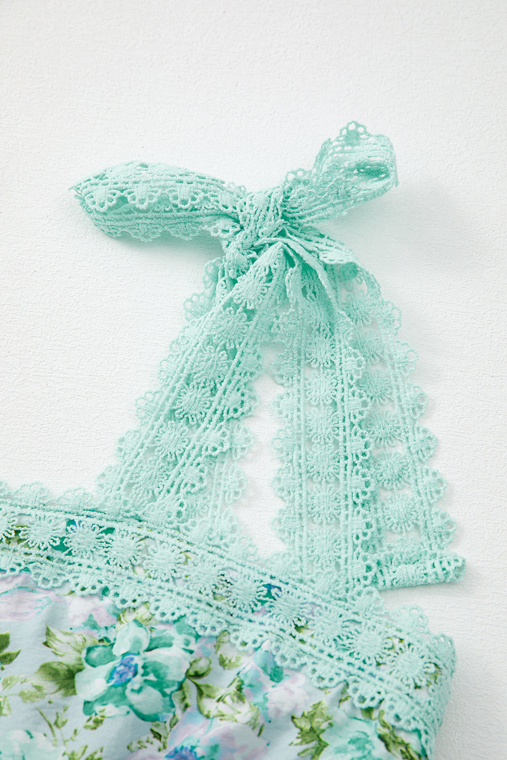 Green Floral Lace Tied Strap Empire Waist Maxi Dress