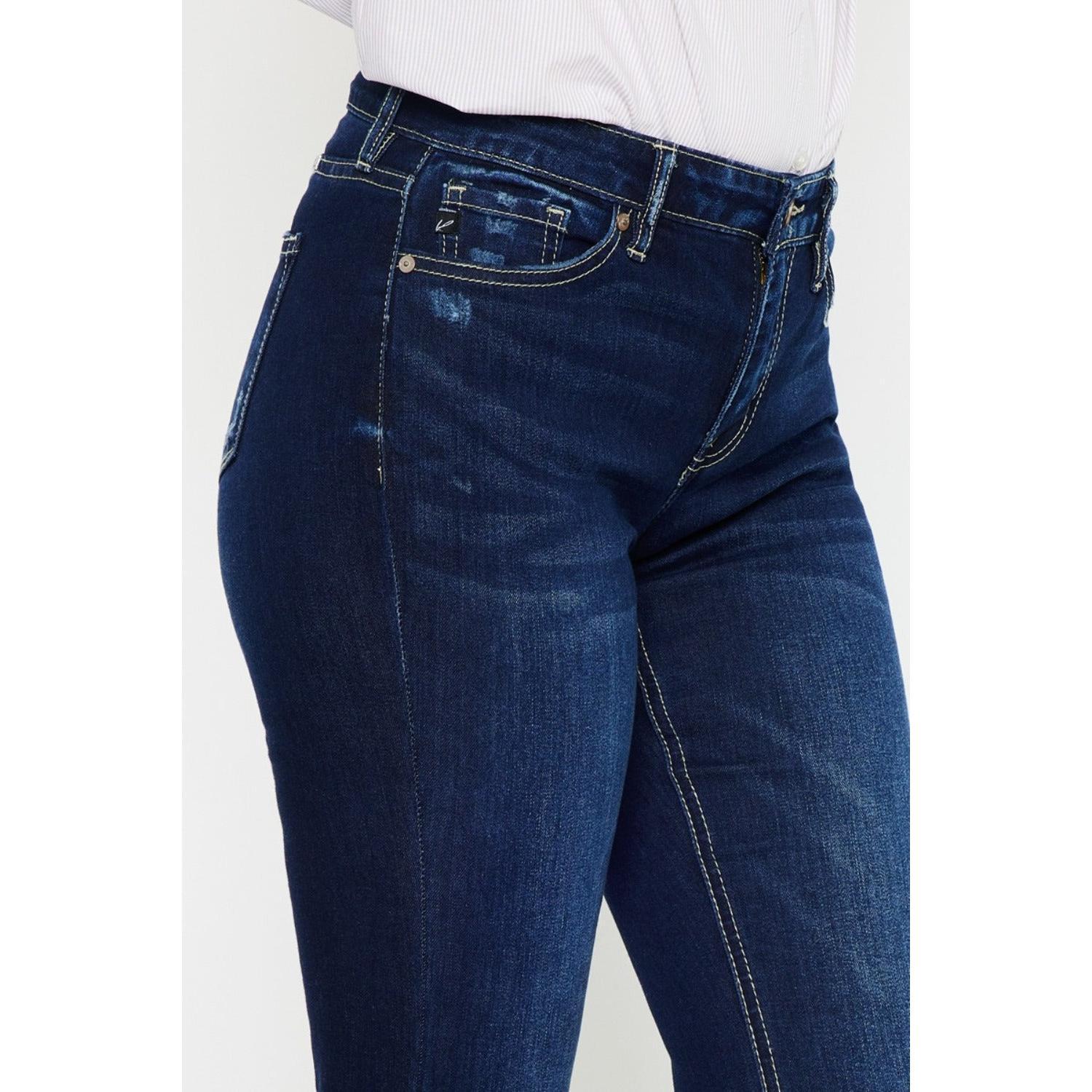 The mid-rise flare jeans in dark stonewash offer a perfect blend of vintage charm and modern comfort. Made with stretchy denim, these jeans provide a flattering fit that moves with you. The mid-rise silhouette and flared leg create a stylish look that pairs well with both casual and dressy tops, making them a versatile addition to any wardrobe. Ideal for any occasion, these jeans add a touch of flair to your outfit.