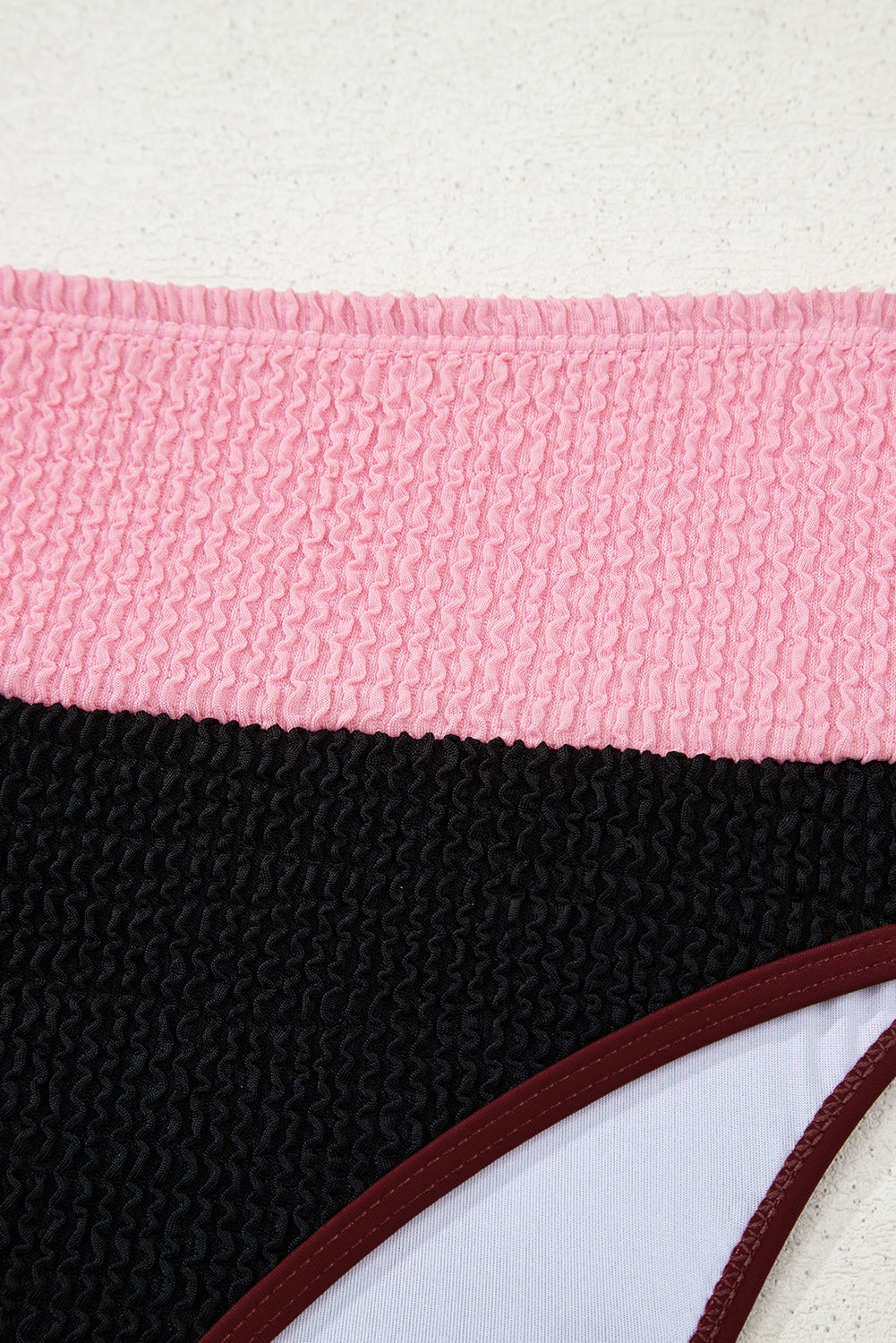 Burgundy Color Block High Waisted Sexy Bikini Set
