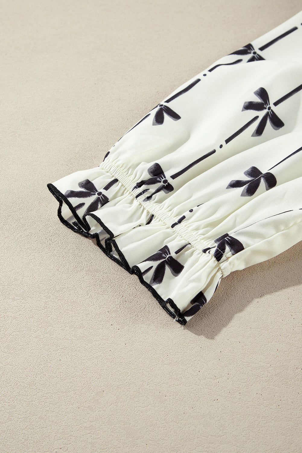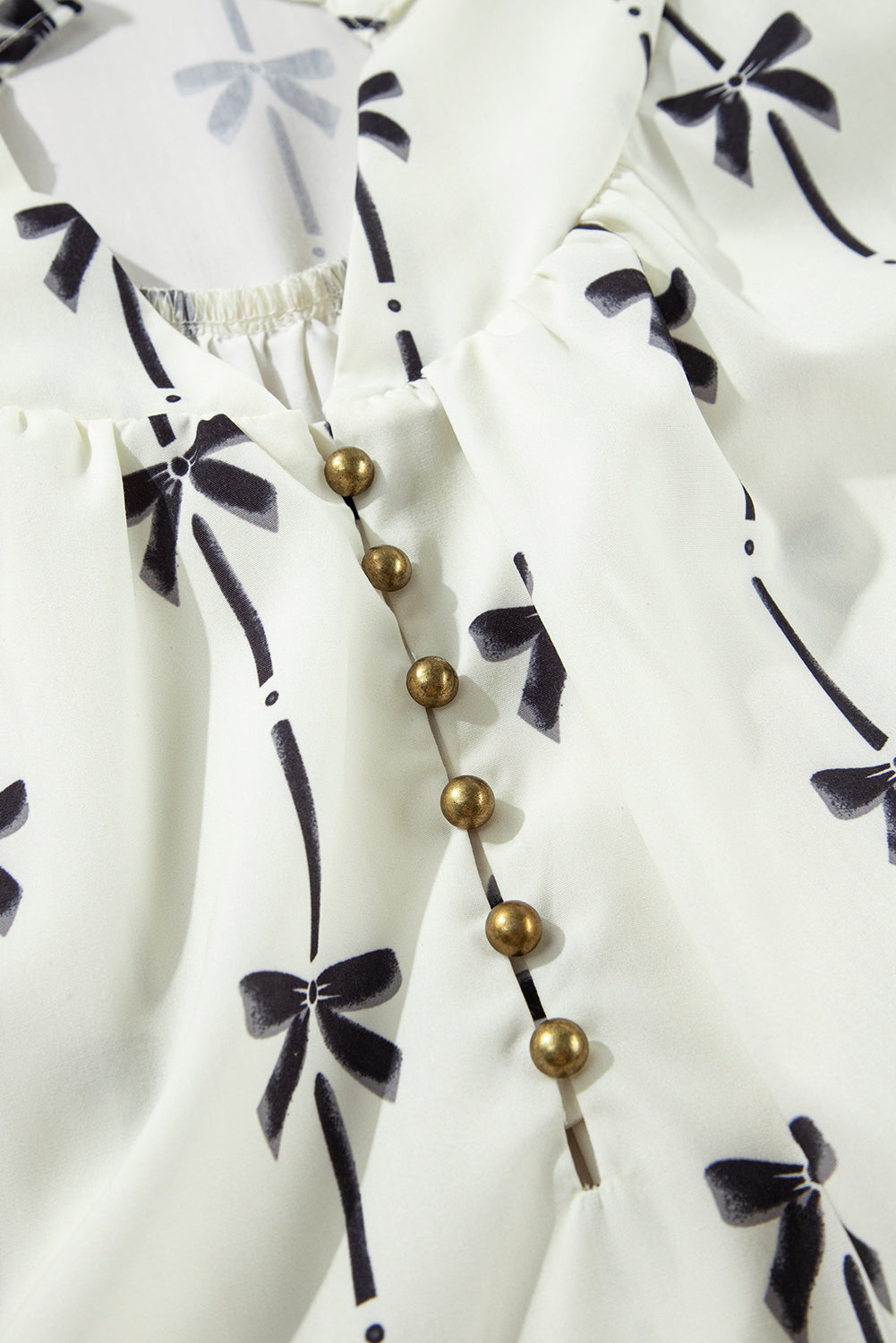 Apricot Striped Bow Print Puff Sleeve Ruffle Plus Size Mini Dress
