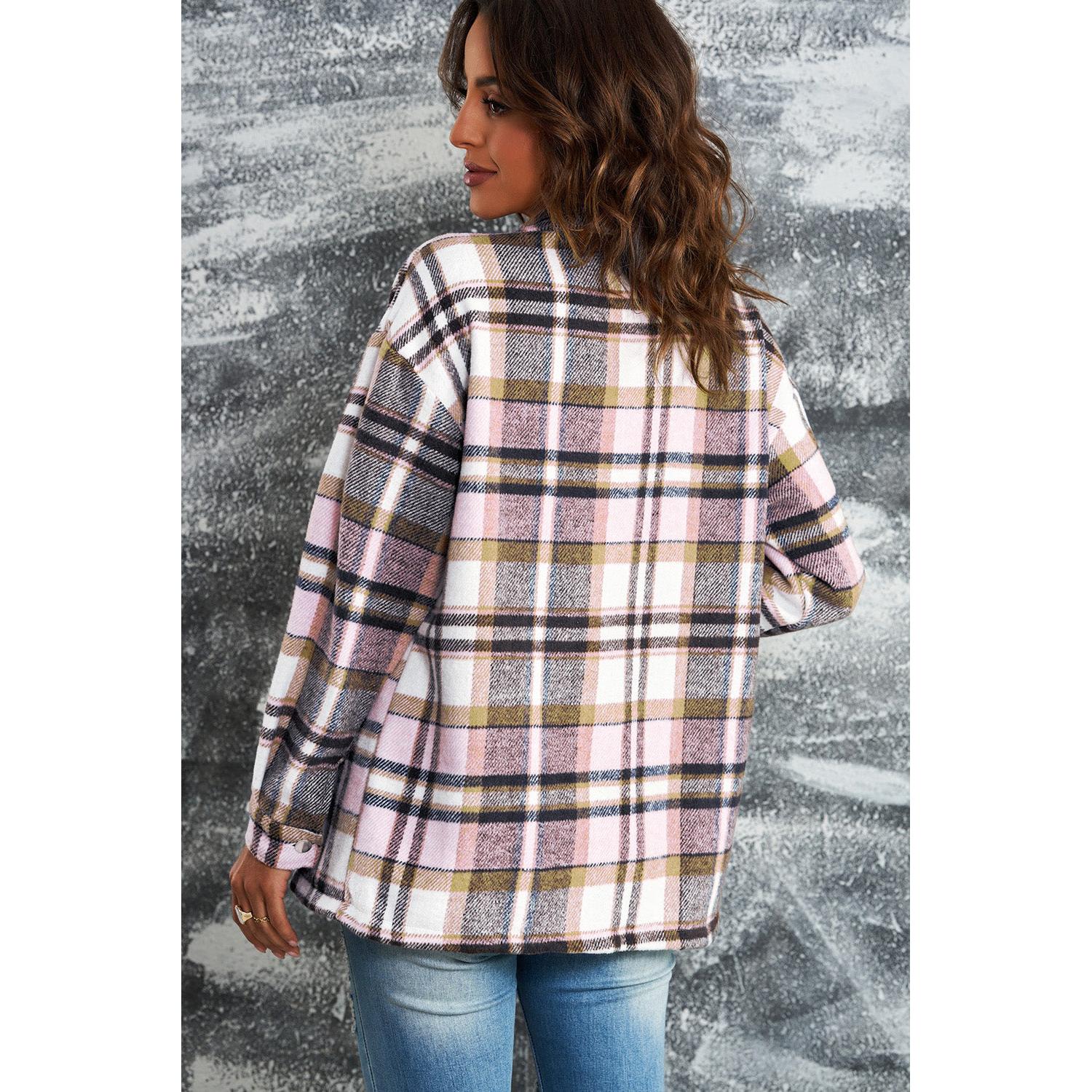 Brown Plaid Button Up Long Sleeve Flannel Shacket