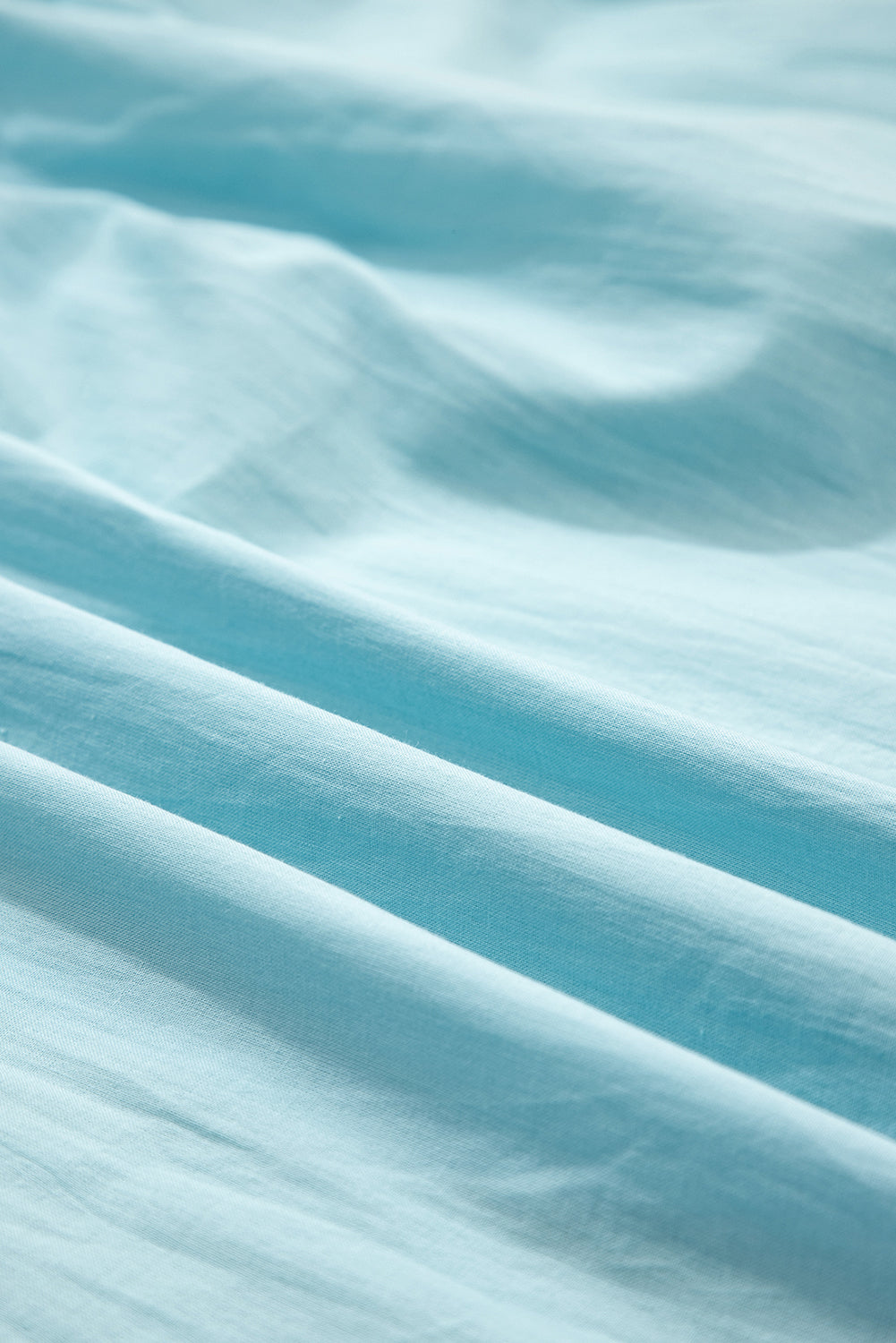 Mist Blue Embroidered Lace Patchwork Tie Neck Puff Short Sleeve Blouse