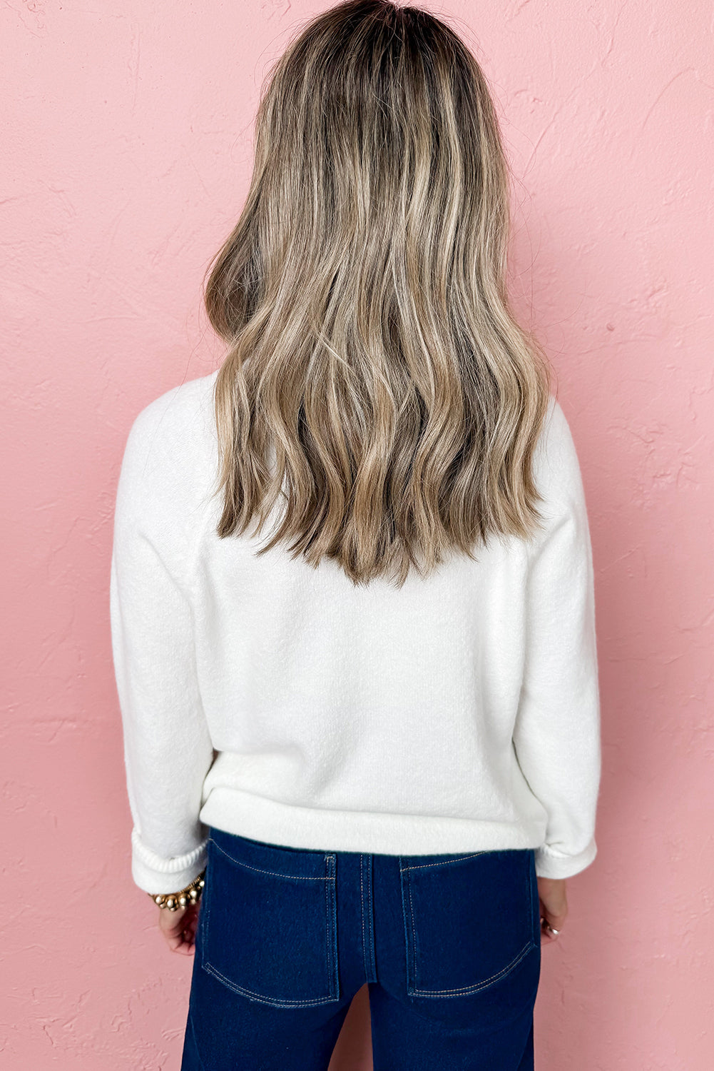 - The classic round neck design and raglan sleeves add a touch of elegance to the sweater.