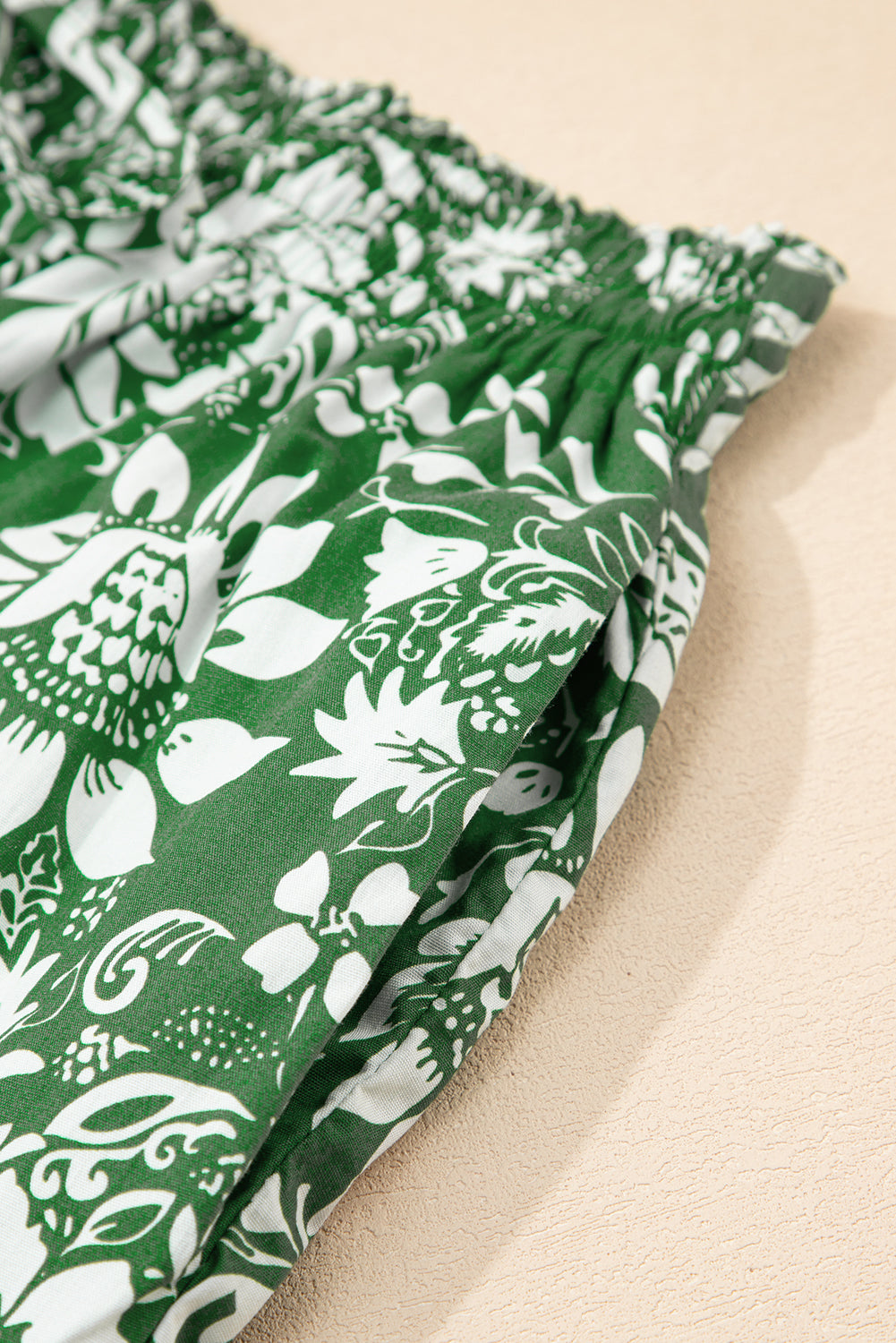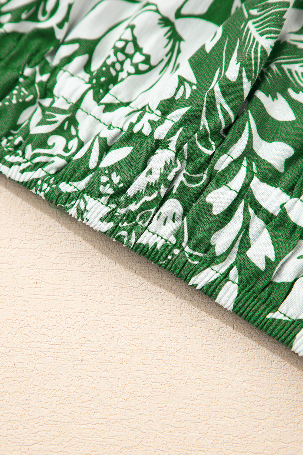 Green Floral Print Shirred Crop Top and High Waist Midi Skirt Set