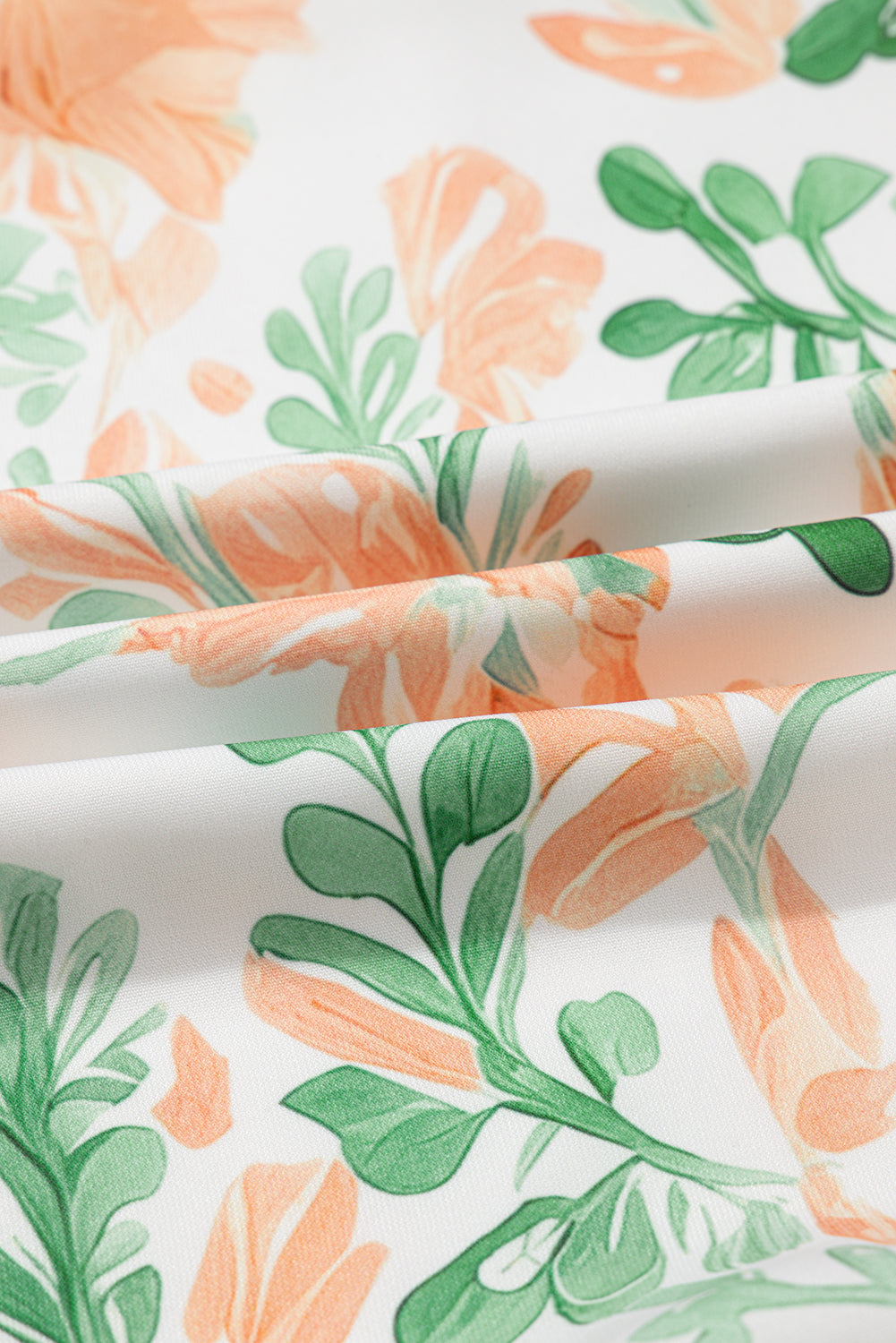Orange Floral Contrast Edge Layered Short Sleeve Mini Dress