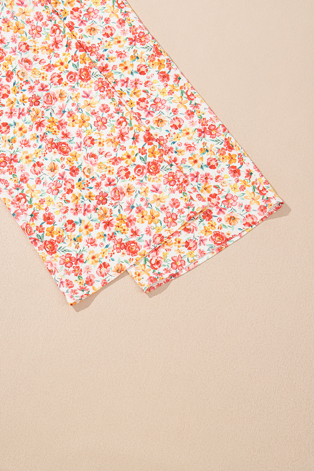 Pink Boho Floral Bandeau Top and High Waist Wide Leg Pants Set