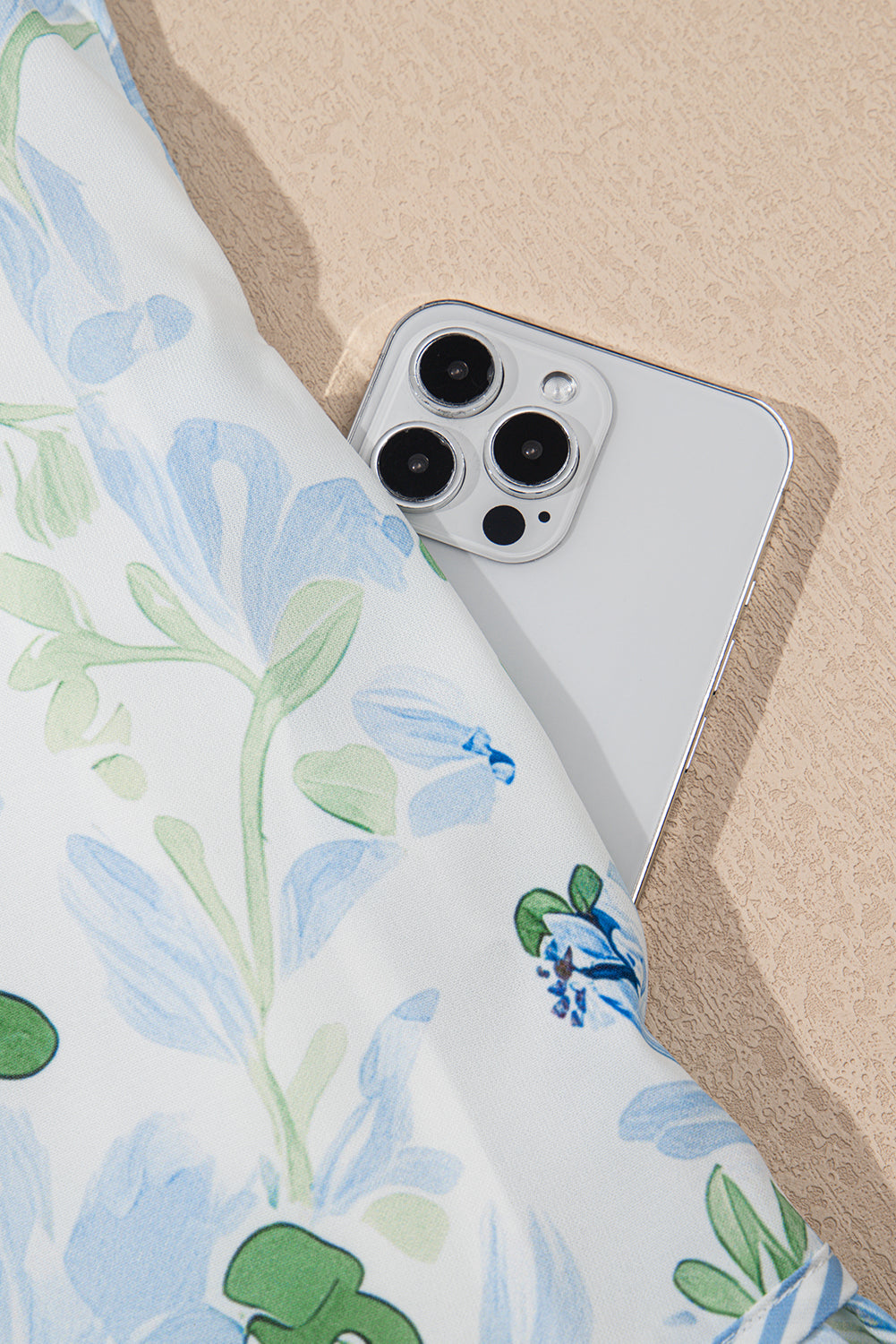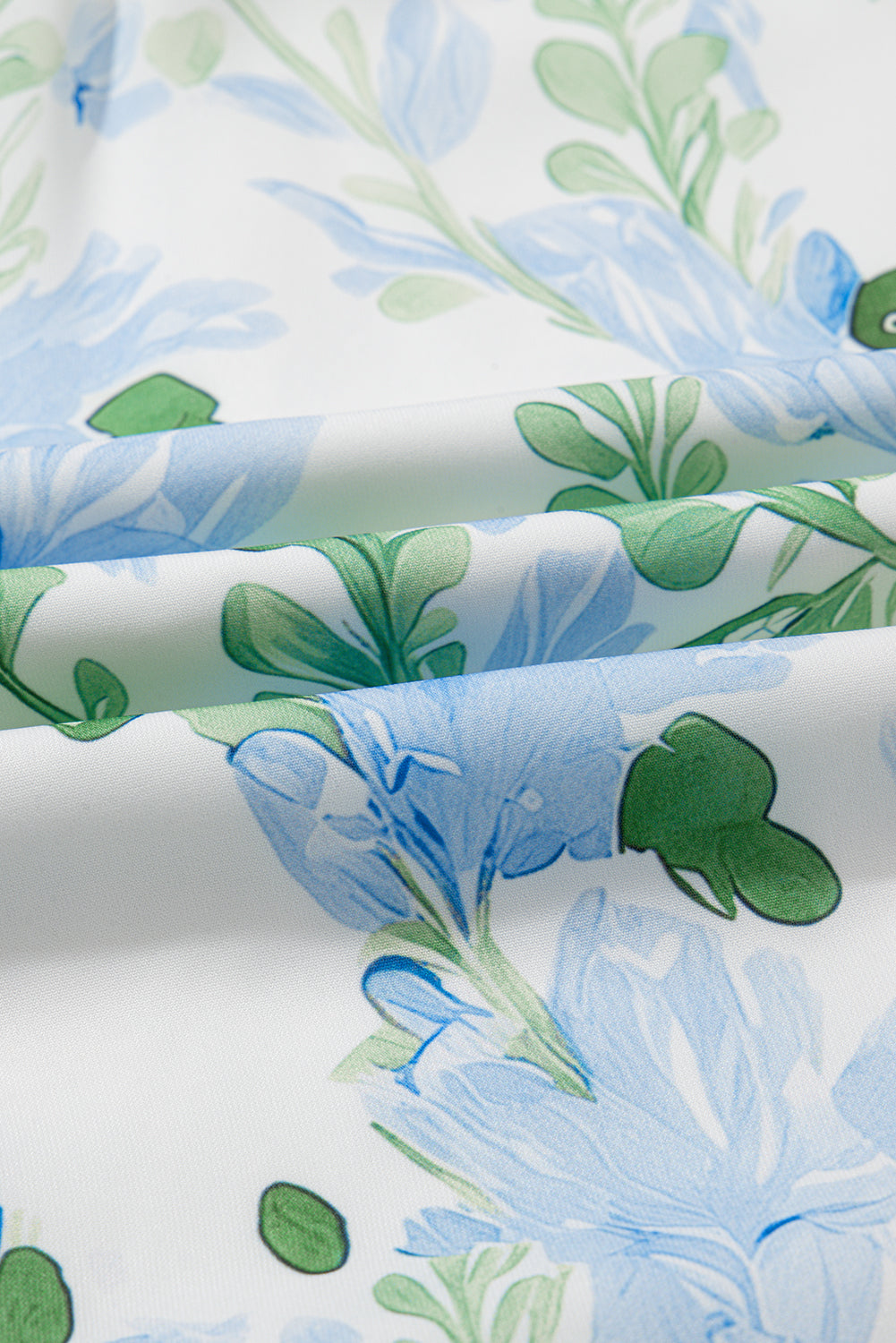 Sky Blue Floral Contrast Edge Layered Short Sleeve Mini Dress