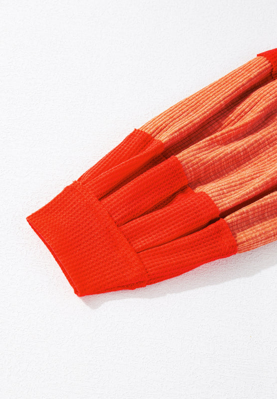 Studded Waffle-Knit V-Neck Long Sleeve Top