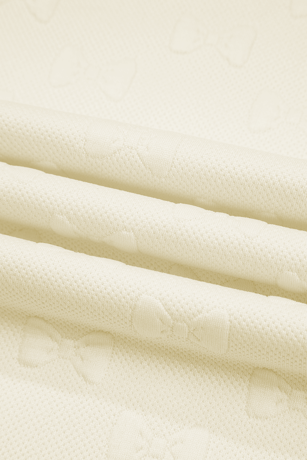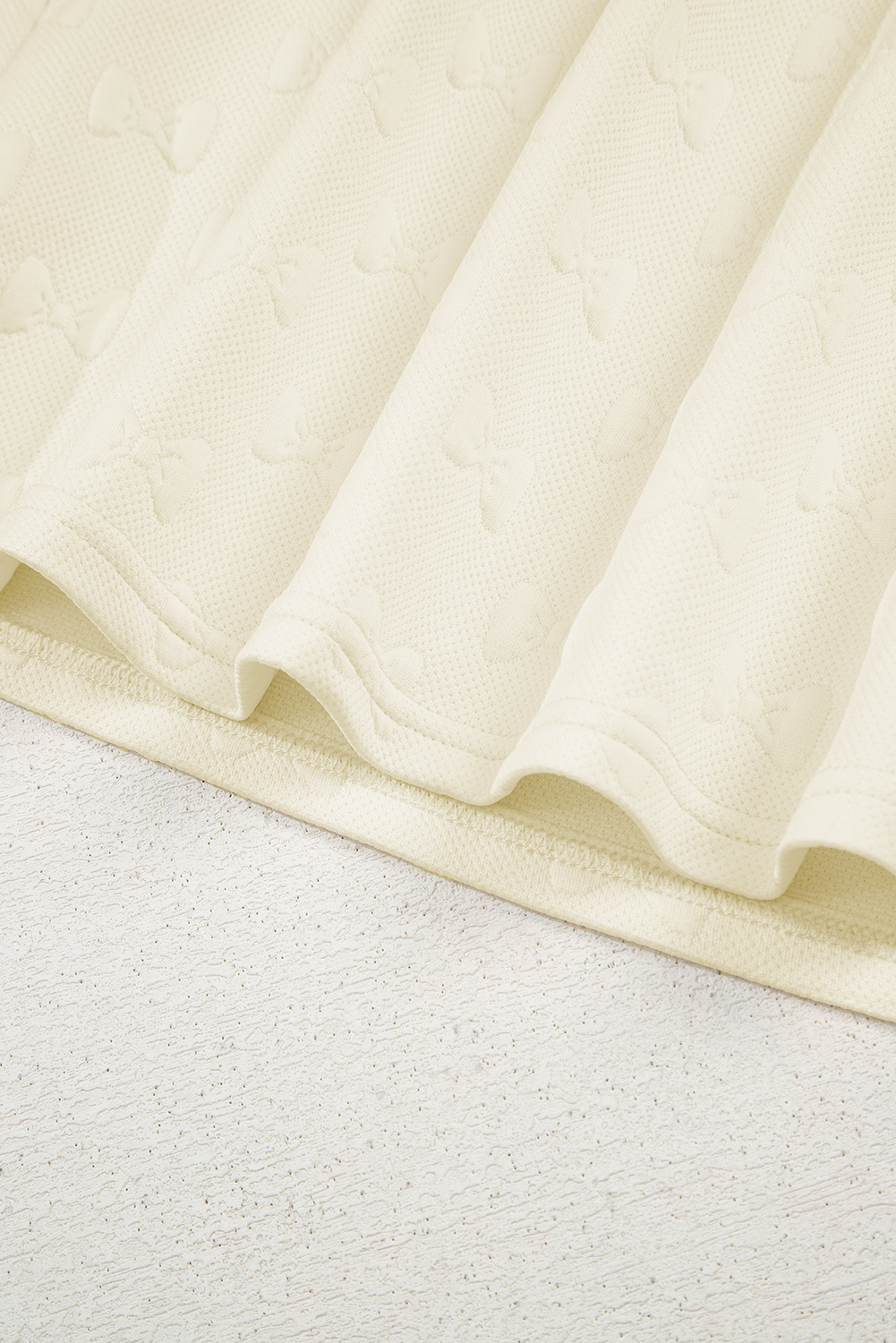 White Bow Jacquard Ruffle Sleeve Short 2pcs Outfit