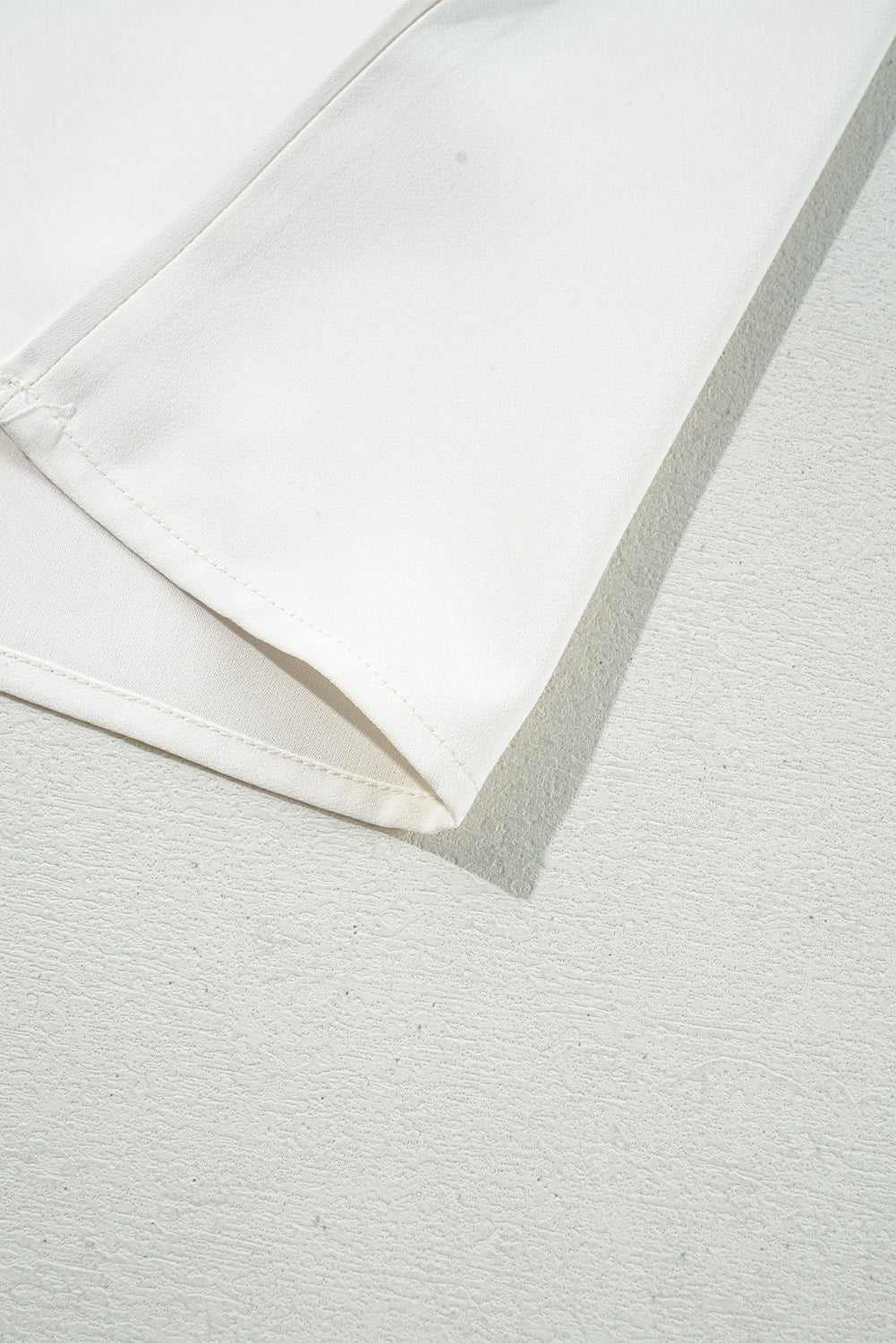 White Scalloped V Neckline Lace Hollowed Lantern Sleeve Blouse