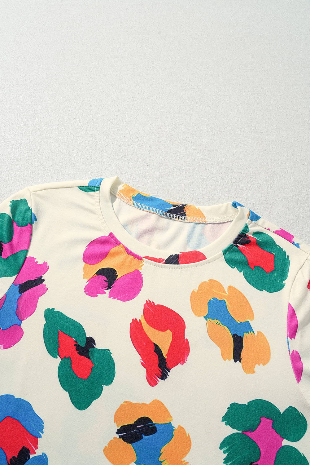 Apricot Leopard Print Long Sleeve Top and Skinny Pants Lounge Set