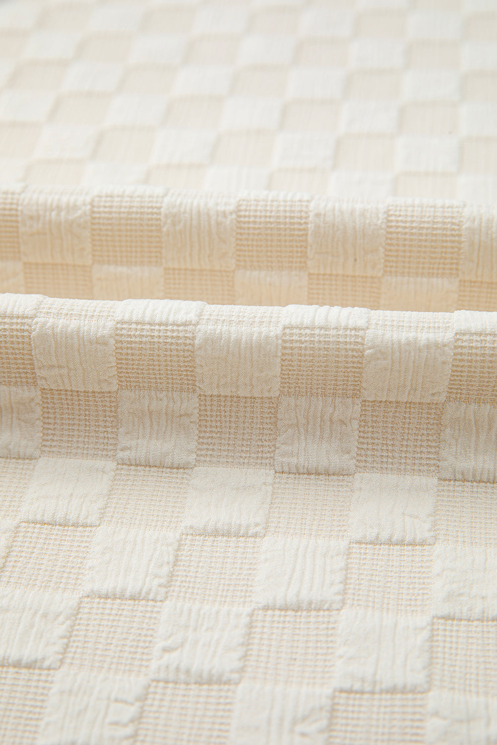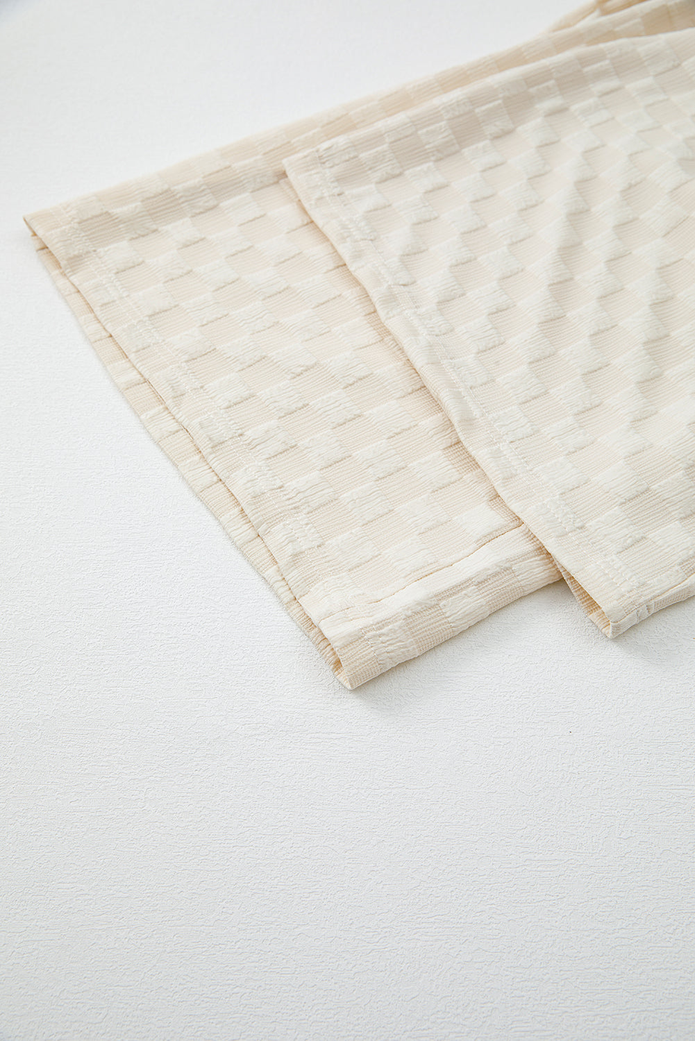 Beige Checkered Pocketed High Waist Wide Leg Overall