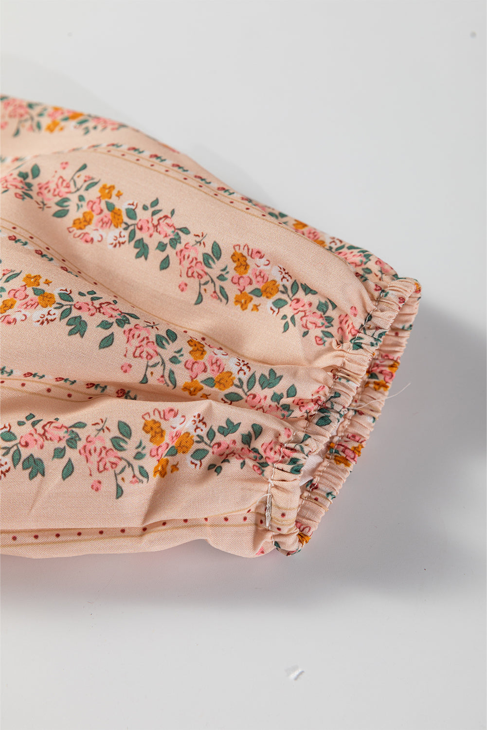- This long sleeve mini dress features a delicate dainty floral print in vertical stripes.