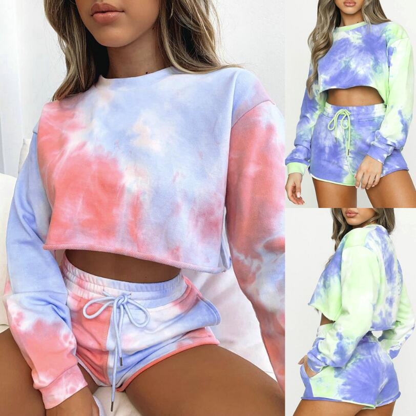 Round Neck Tie-dye Loose Shorts Fashion Casual Suit